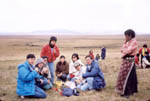 側邊的人是當地藏民守候我們, 想我們幫襯騎馬, 不過我們沒有興趣。請注意我們已穿上羽絨, 高原溫度較低, 日間約17度左右啦。 |