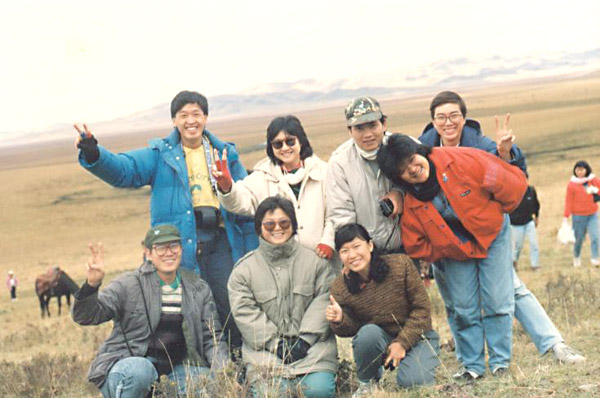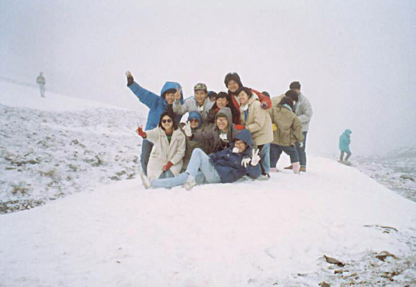 | 玩雪不忘拍照留念 "長江一號"要員都在這裡, 看似很熟落, 其實都是當日識的;