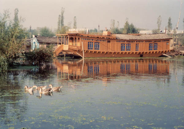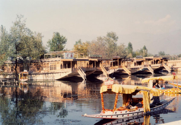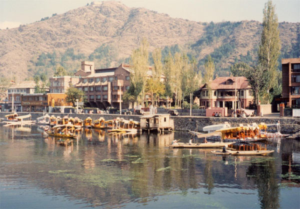| 大魯湖岸邊周圍佈滿船屋及小艇"Shikaras"。 |