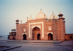 到達Agra後安頓好便出去參觀世界七大奇景之一的"泰姬陵"(Taj Mahal),先在泰姬陵門外入口處拍照留念 |