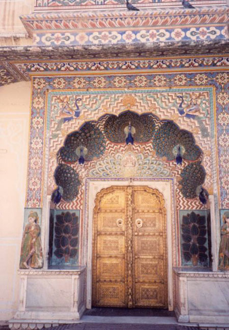 | 在風之宮內的一處"天井"位置有幾扇門, 其中一個是著名的孔雀門, 當年我手上的旅遊書(India