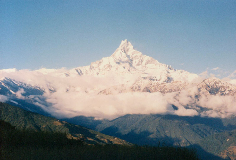 但行極都未到, 經常見到幾坐著名高峰, 其中之一是當地最優美及富特色的"魚尾峰" Machhapuchhre (見圖 - 海拔6,993公尺),