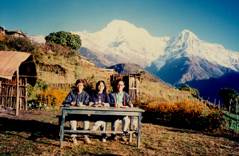 11月25日 - 早上吃過早餐後準備出發, 澳洲朋友都有來送行。先到車站坐吉普車到Phedi, 約一點半由Phedi步行4小時約5點半到Pothana(1,660公尺),