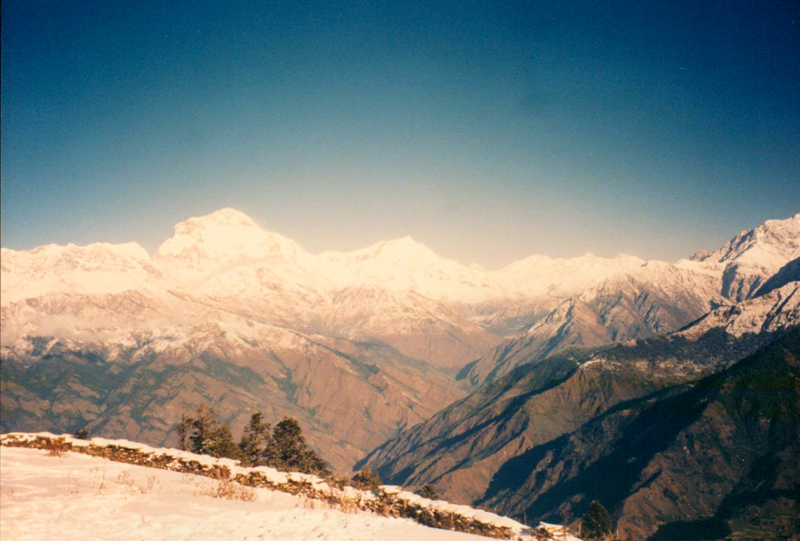| 在Poon Hill山頂上向西面遠望可以見到8167公尺高的世界第七高峰有"魔鬼峰"之稱的Dhaulagiri