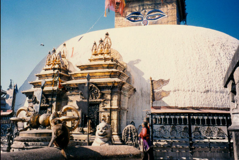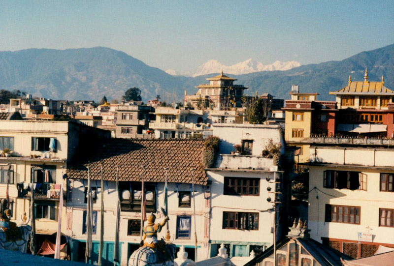 八眼神廟由於較近喜瑪拉雅山區, 可以看見遠處的雪山山峰。