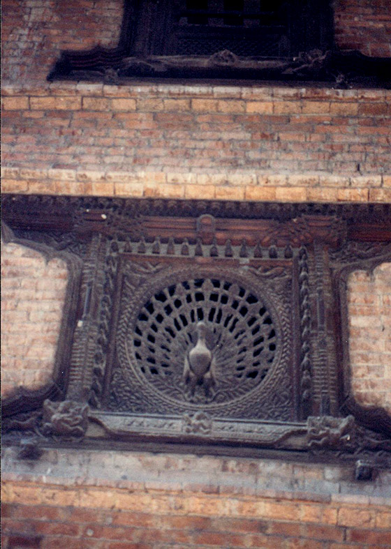跟據旅遊書指示找到的木造孔雀雕刻木窗, 居然在建築物的後巷。